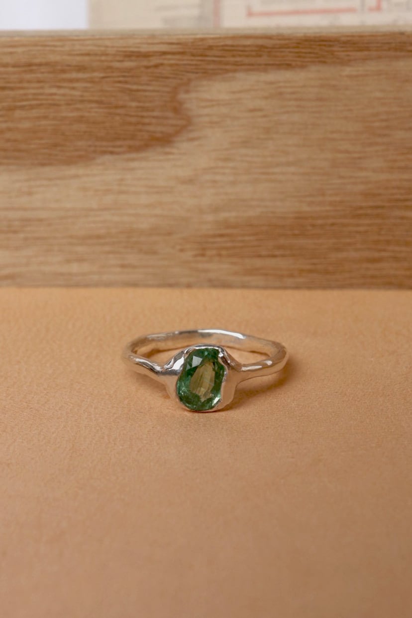自然のいろ、緑のいろ、静かな畝りのある枝のようなリング部分はシンプルなデザインにまとめています。