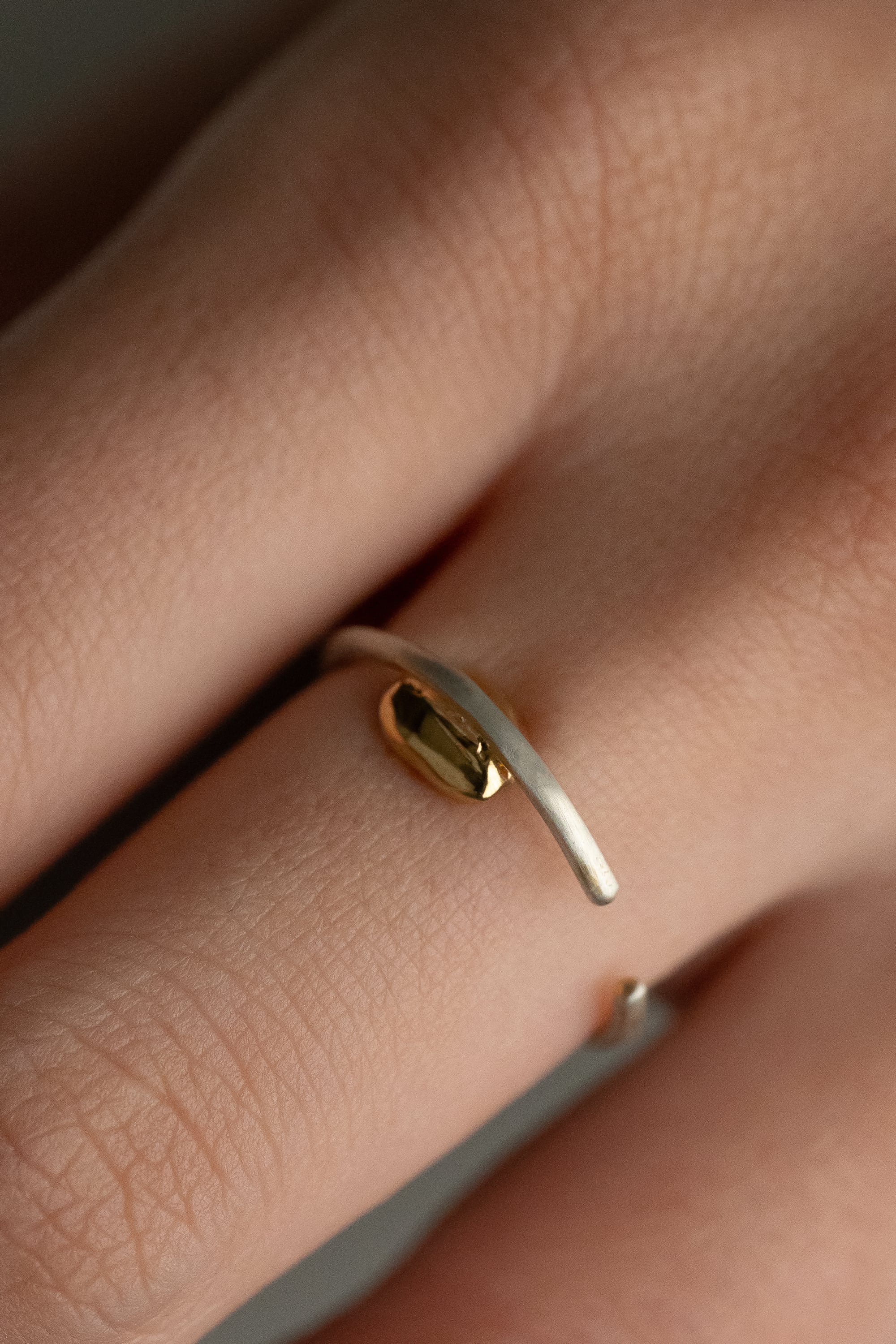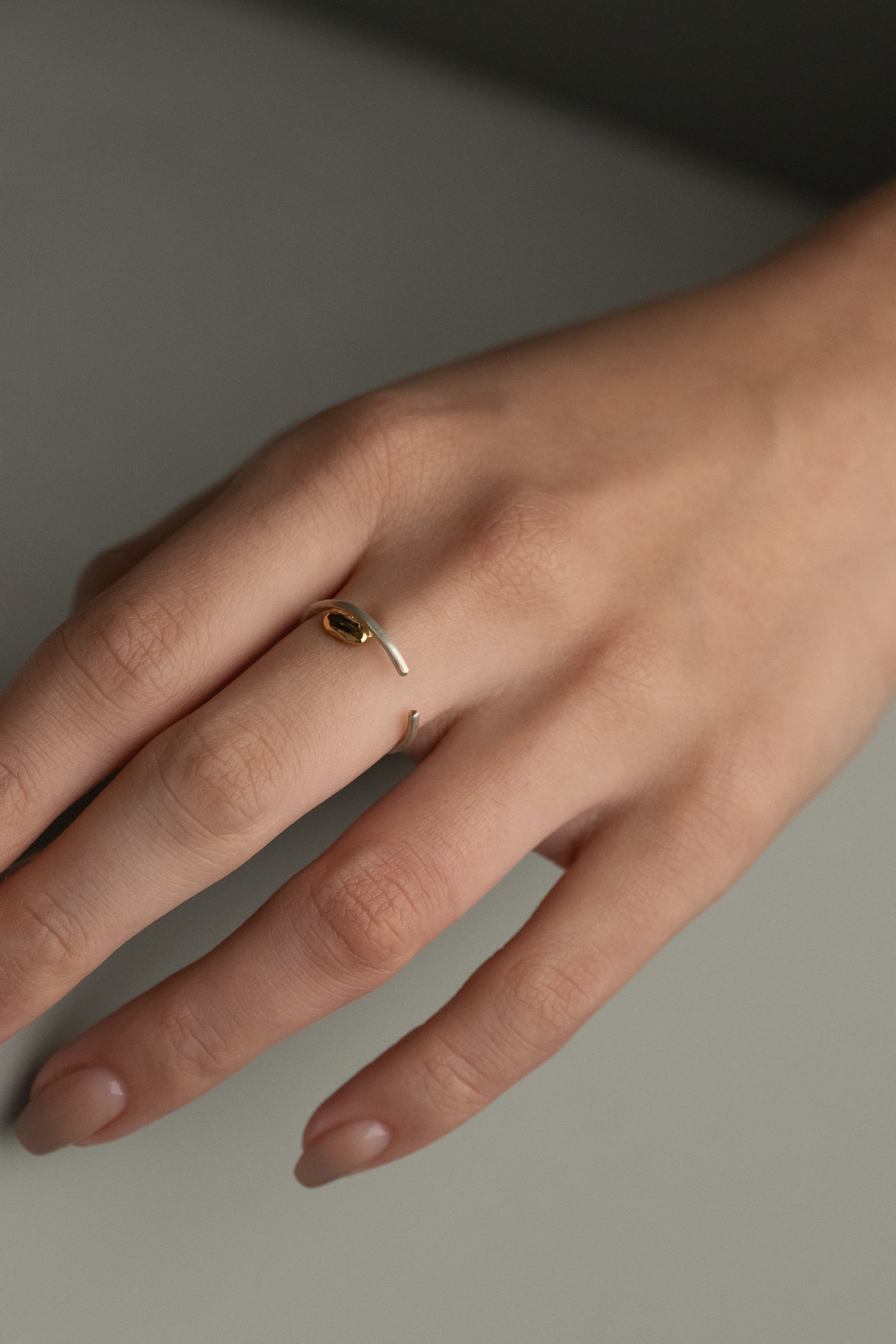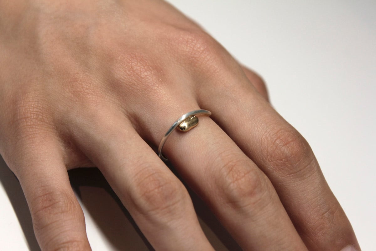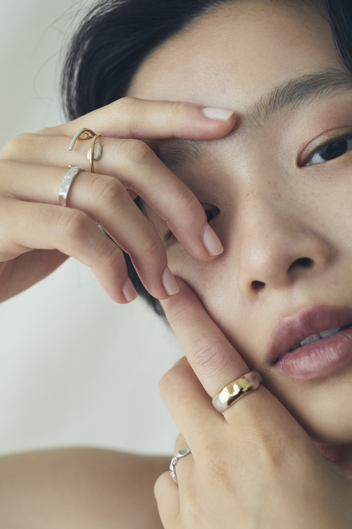 リングの表面はシルバー色でハンドマット加工、モチーフはゴールド色で鏡面仕上げとなっており、色や質感の違いをお楽しみいただけます。