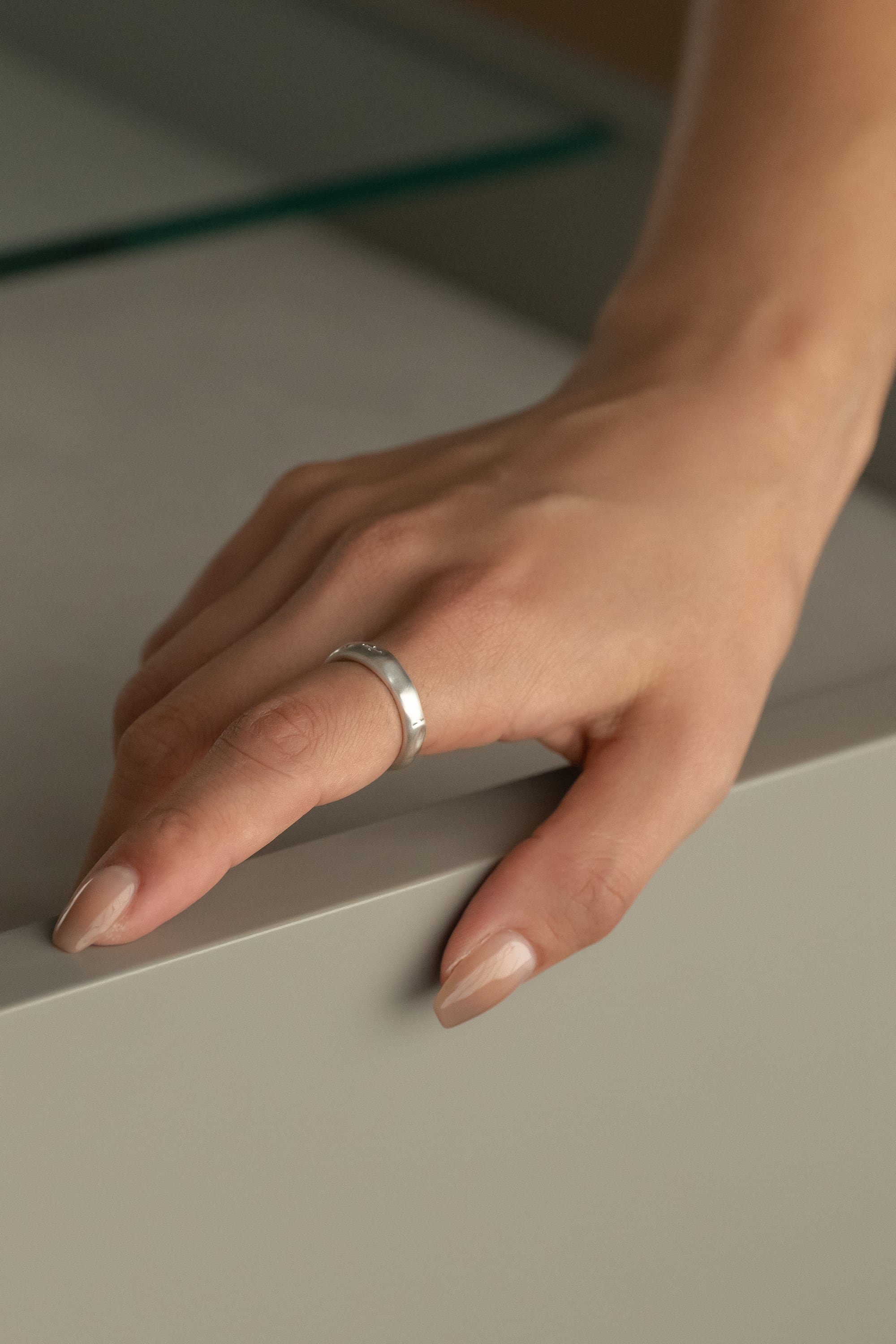森林の土に水が溜まった様子や、ひとすじの川をイメージしたリングです。