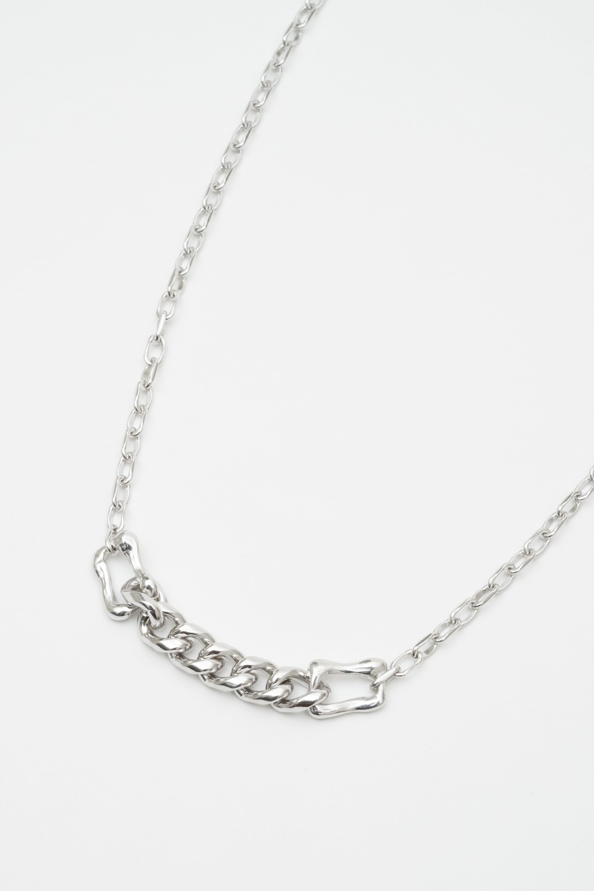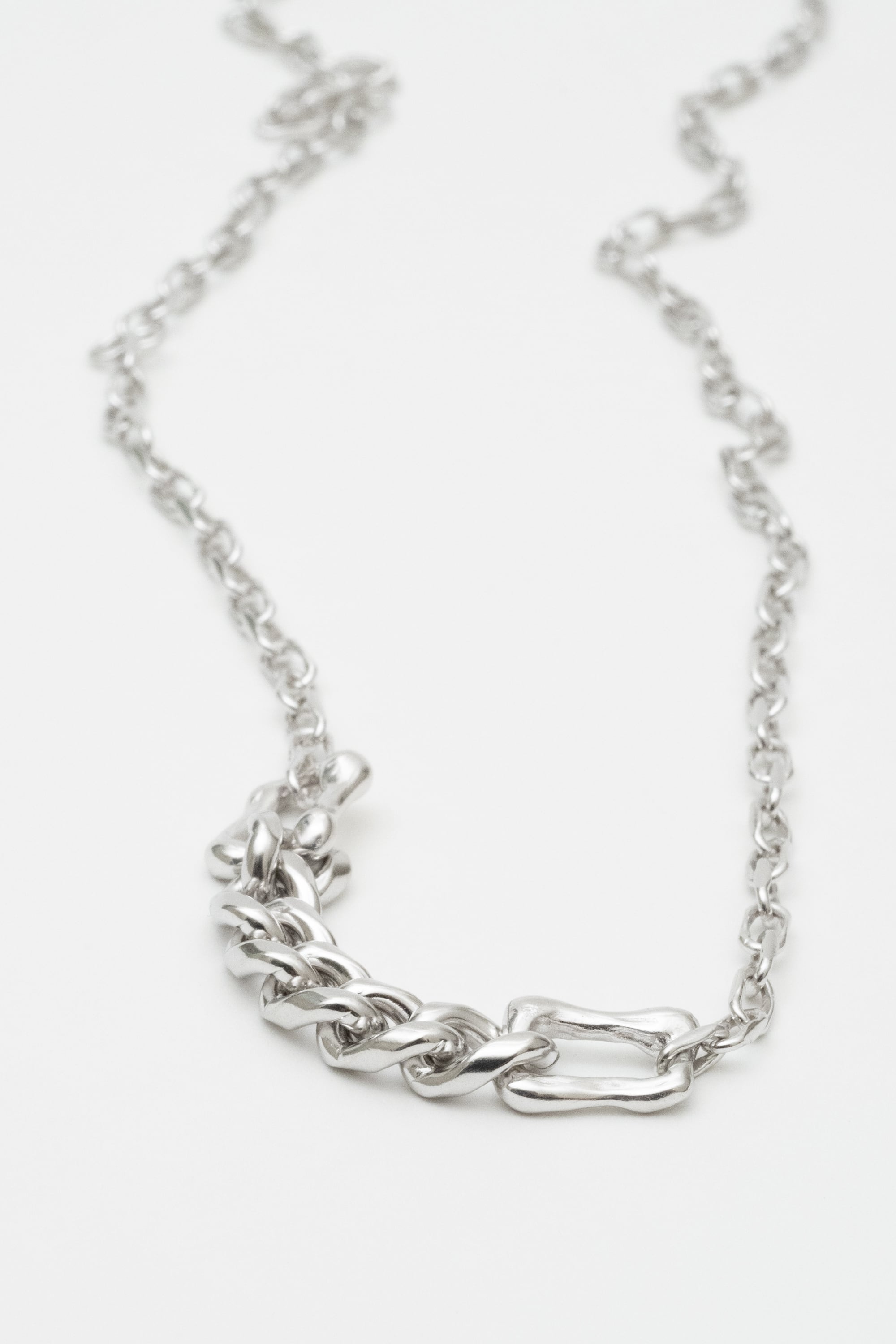 太いチェーンと細いチェーンのコントラストは、大きな川の水の動きと緩やかな川の動きを表現しています。