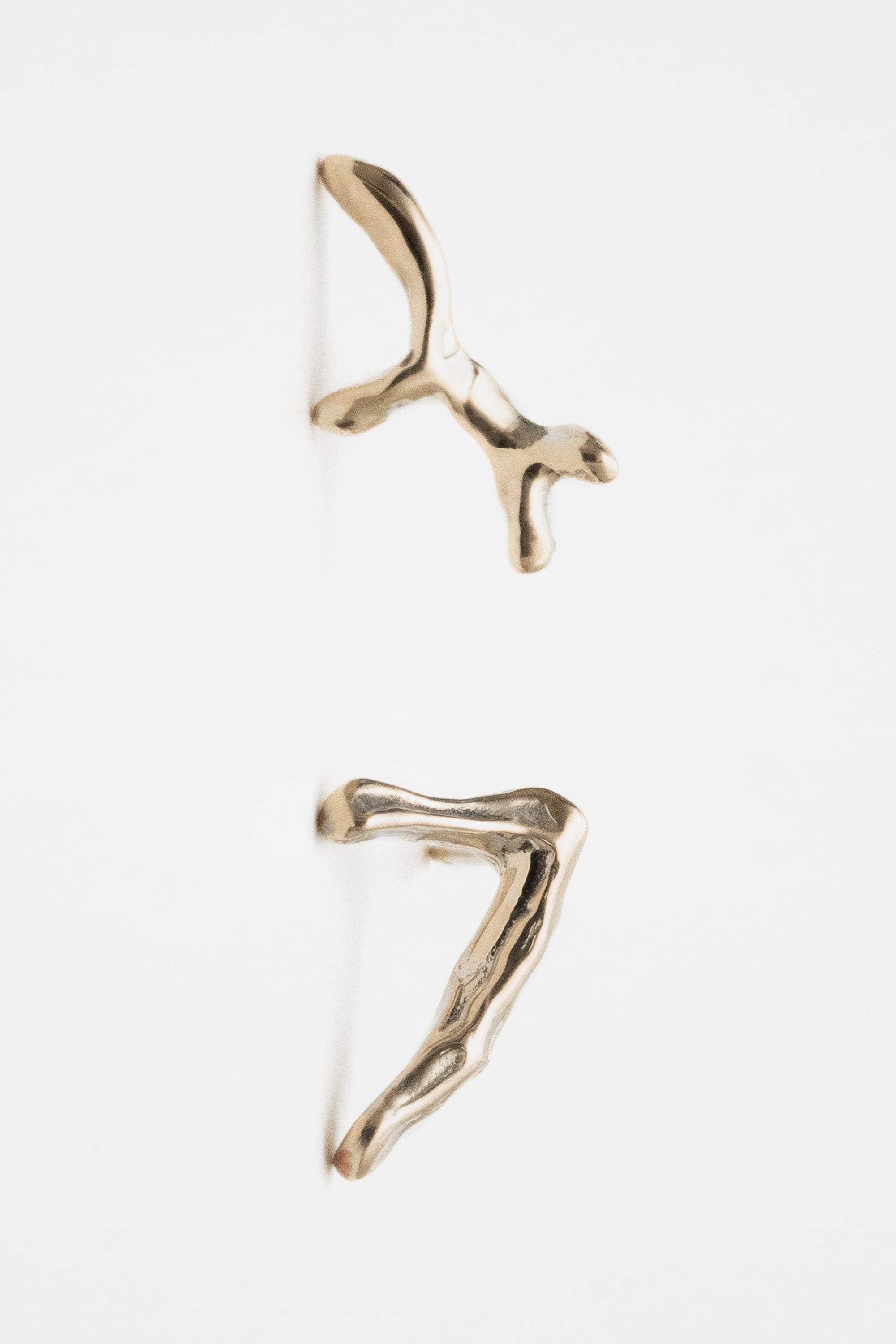 染色体のかたちや動きをイメージソースに製作したピアスは小枝や珊瑚の形、石目や木目の模様にも見えます。