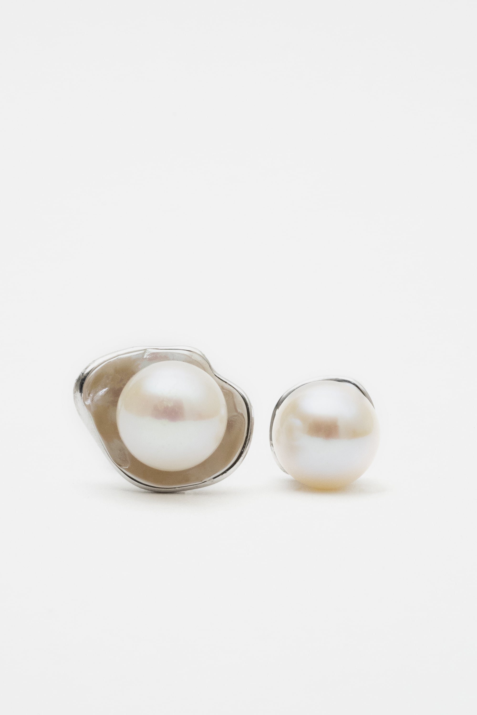 生命が細胞分裂により成長を遂げることから両耳とも同じ形にせず動きのある歪な形にデザインしています。しっとりとした艶と輝きが特徴の淡水真珠を使用しており、フォーマルにもカジュアルにも合わせやすい耳飾りです。