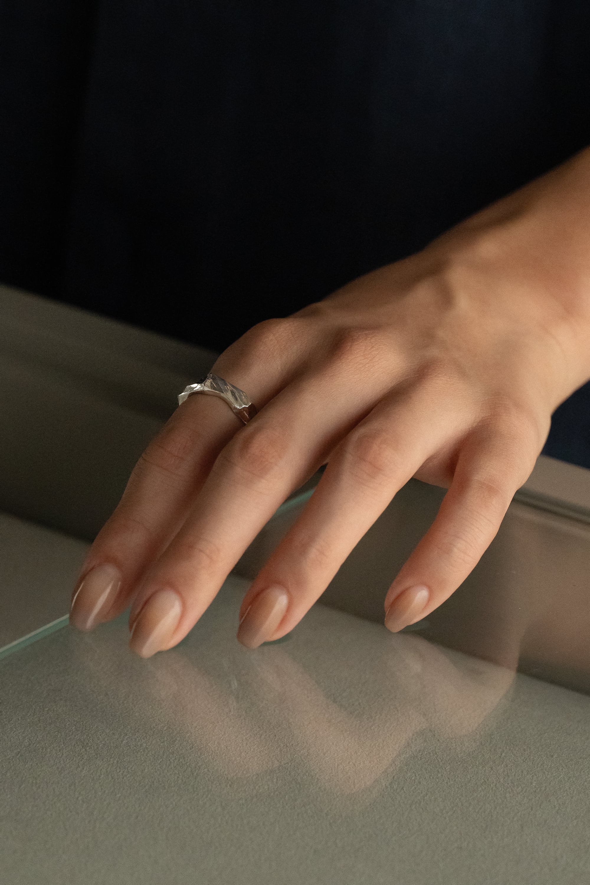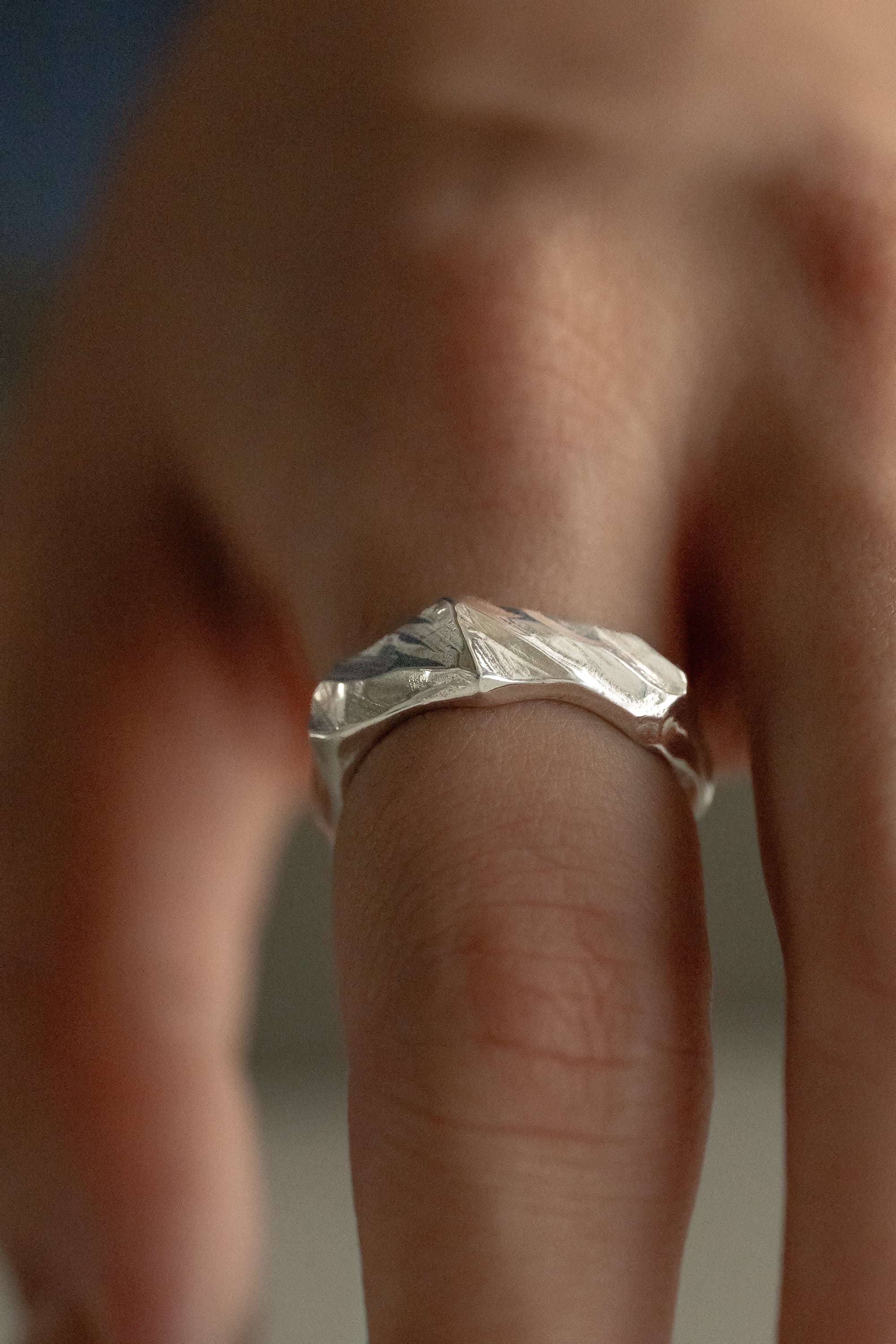 日光があたり植物の葉が艶やかに光る様子や、葉や木々が風でそよぐ様子からインスピレーションを受けて製作したリングです。