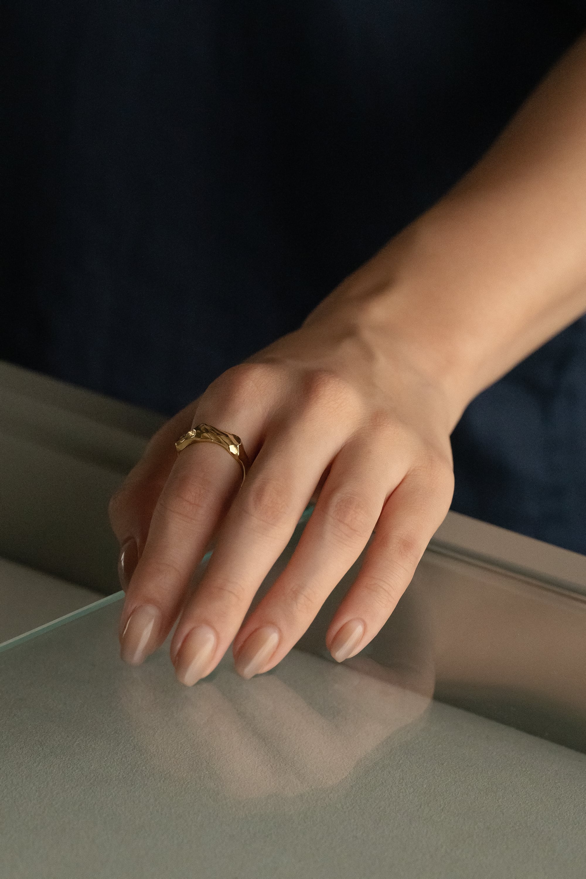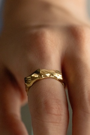 日光があたり植物の葉が艶やかに光る様子や、葉や木々が風でそよぐ様子からインスピレーションを受けて製作したリングです。