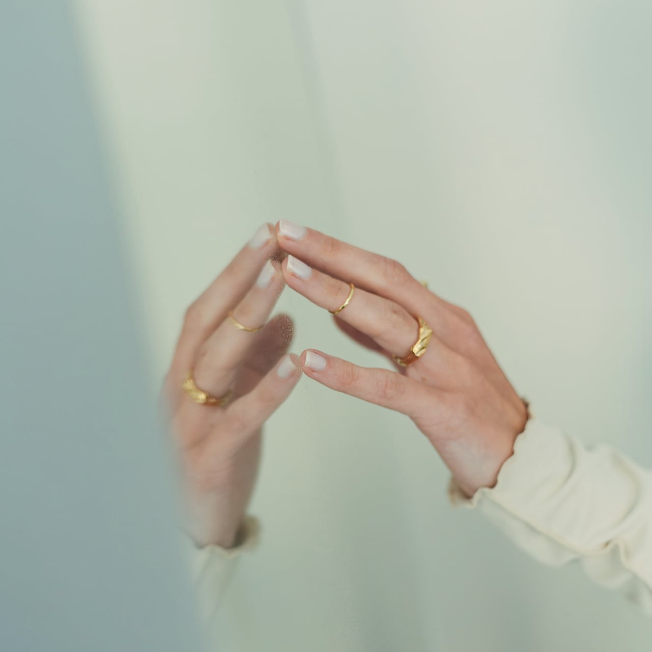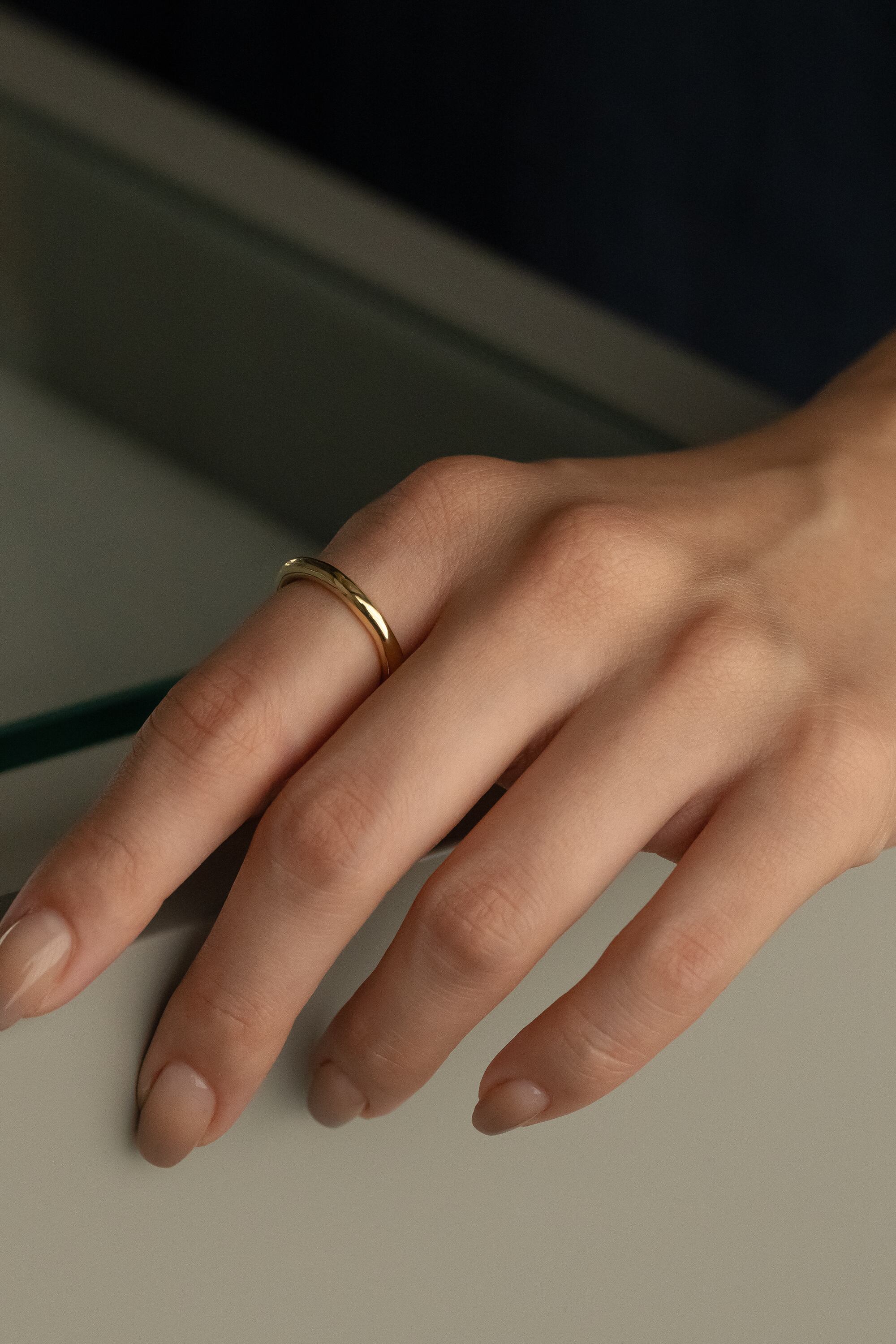 太陽や月の周囲に薄い雲がかかった際に見られる、光の輪が現れる現象(HALO)を表現したリングです。ほんの少しだけ揺らぎのある形は、どの面を正面にしても良く飽きの来ないシンプルなリングです。光の輪の内側と外側で明暗が違うことから、ブラックロジウムとゴールドの2色展開にしています。