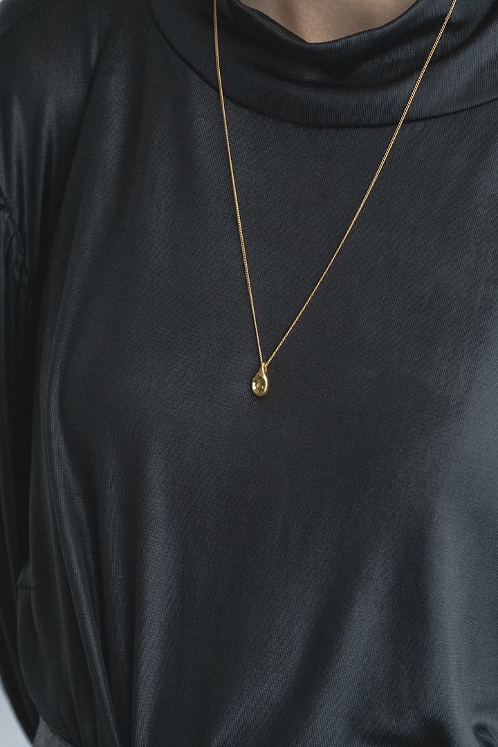 丸い形のネックレストップは、自身を映し出す鏡がモチーフになっており、
